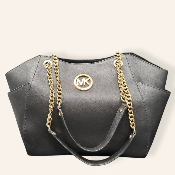Michael Kors Jet Set Black Saffiano Leather Gold Chain Shoulder Bag