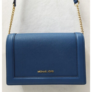 Michael Kors Jet Set Blue Leather Flap Closure Chain Strap Crossbody Bag