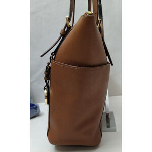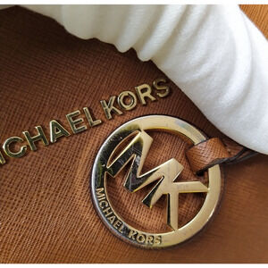 Michael Kors Jet Set Brown Crossgrain Leather Pockets Zipper Tote Shoulder Bag