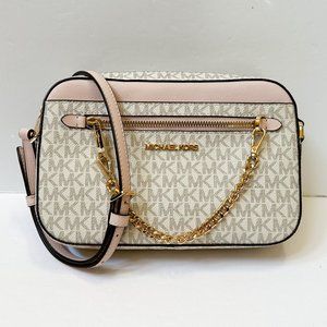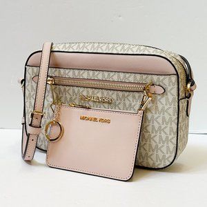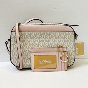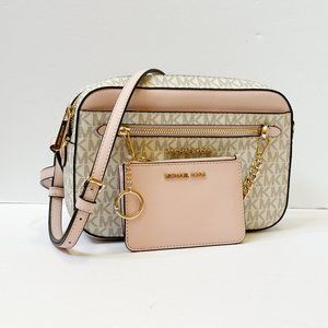 Michael Kors Jet Set Chain Crossbody Bag + Coin ID Key Wallet MK Vanilla Pink