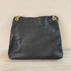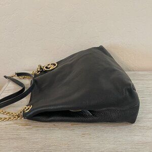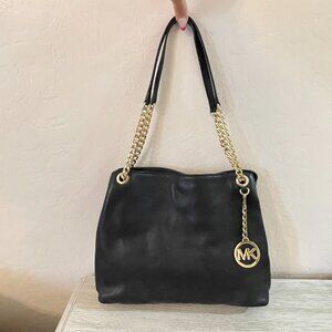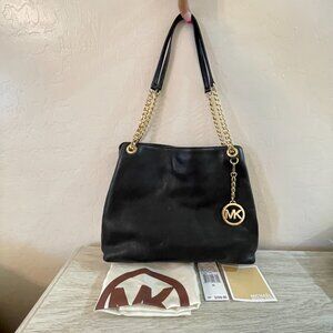 Michael Kors Jet Set Chain Large Shoulder Tote Black Leather Gold Logo