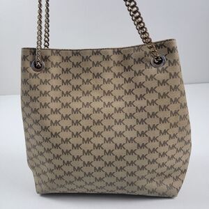 Michael Kors Jet Set Chain Large Signature Tote Khaki/Brown Coated Canvas Bag