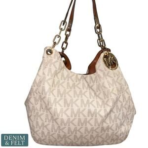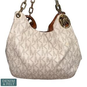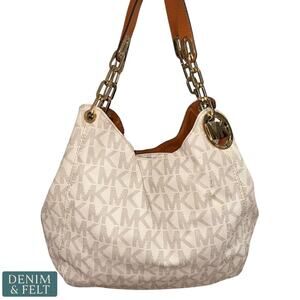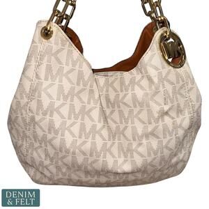 Michael Kors Jet Set Chain Shoulder Bag/Purse MK Logo Vanilla Gold Hardware