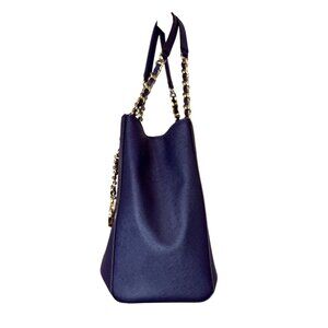 Tags: michael kors tote, mk chain tote, saffiano leather bag, navy tote, michael kors purse, jet set tote, designer handbag, work bag, structured tote, navy leather purse, gold hardware bag, classic michael kors, everyday tote, shoulder bag