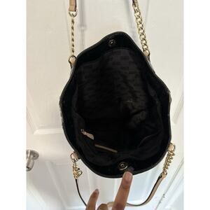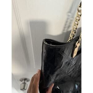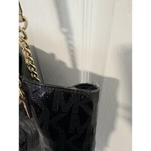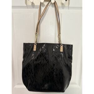 Michael Kors Jet Set Chain Tote Bag Black MK Patent Leather Shoulder Purse