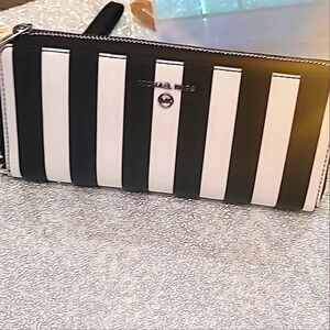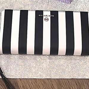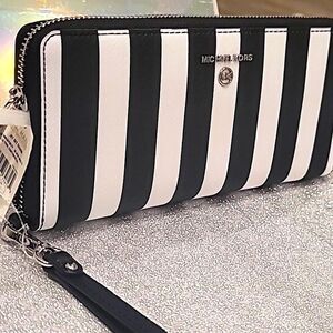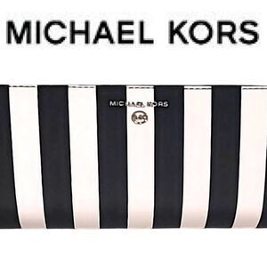 Michael Kors Jet Set Charm Continental Large Wallet- Black/White Stripe