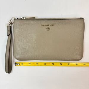 Michael Kors Jet Set Charm Pebbled Leather Clutch Wristlet Wallet Gold Hardware