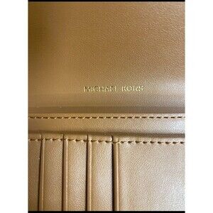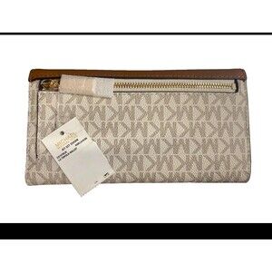 Michael Kors Jet Set Charm Vanilla/Acorn Large Trifold Wallet NWT 32F1GT9E3B