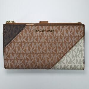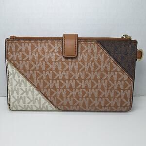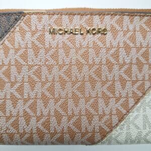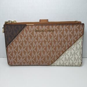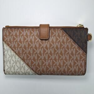 Michael Kors Jet Set Color-Block Logo Smartphone Wallet Leather Monogram Signature Double Zip Phone Wristlet