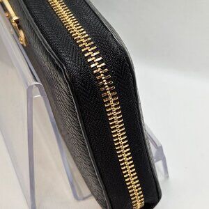 This item is in good condition, there are minor signs of everyday use or wear. No major callouts, no stains, no tears. This item is missing the leather wristlet, however a small gold chain wristlet is provided. There are surface scratches on the hardware. This wallet can carry a cell phone.