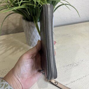 Seller notes: General patent leather wear as she is preloved. Zipper functional. Lots of room for credit cards, id’s, or whatever your heart desires. Metallic, MK logo, ready for her next adventure.
