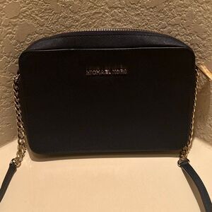 Michael Kors Jet Set Crossbody Bag Blue Saffiano Leather Classic Chain Accent