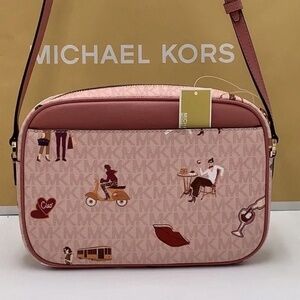 Michael Kors Jet Set Crossbody – Pink Graphic Travel Print