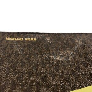 This chic Michael Kors Jet Set Go clutch wristlet features a stylish MK logo and a unique illustration design, perfect for your on-the-go lifestyle. Compact and convenient, it's ideal for carrying essentials.
