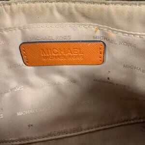 Fading of color on front and back. Interior fabric has makeup and ink marks, have not been treated. Width: 10", Height: 5.5", Depth: Slim, Strap drop: 5.5".