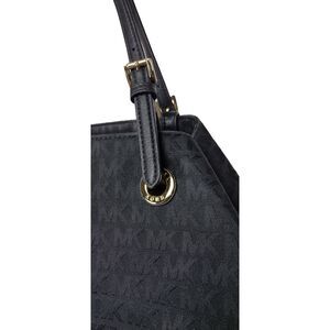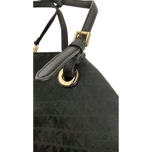 Michael Kors Jet Set Grab Bag Black Monogram Logo Signature Canvas Purse