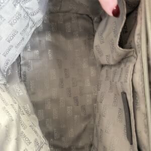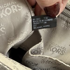 Feet on the bottom exterior Snap closure with leather straps to interior Fully lined with Michael Kors Signature Fabric Leather MK tag Interior zip pocket and slip pockets