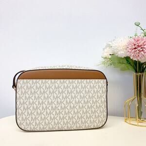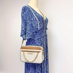 Michael Kors Jet Set Item Large East West Zip Chain MK Signature Crossbody Bag Vanilla: