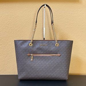 Michael Kors Jet Set Item Large Front Pocket Shoulder Chain Tote Bag MK Brown