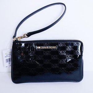 Michael Kors Jet Set Item Large Gusset Top Zip Wristlet Patent Leather MK Black