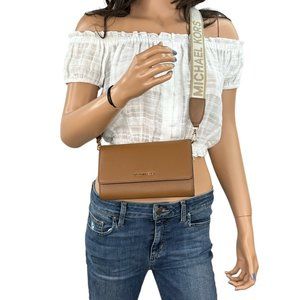 Michael Kors Jet Set Item Large Zip Around Wallet Crossbody Bag Brown Luggage