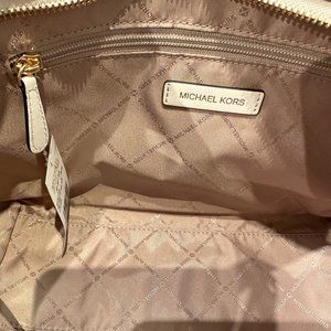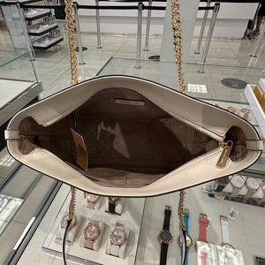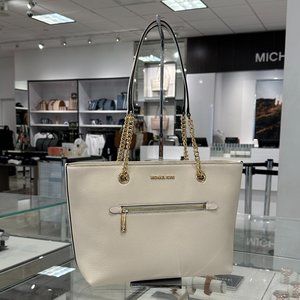 Michael Kors Jet Set Item MD Front Pocket Shoulder Chain Tote Bag Light Cream