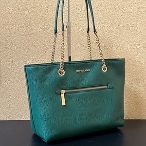 Michael Kors Jet Set Item Medium Shoulder Chain Tote Bag Jewel Green
