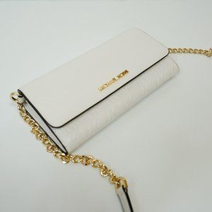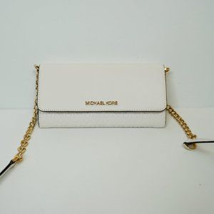 Michael Kors Jet Set Item large Wallet On A Chain Crossbody Bag MK White
