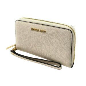 Michael Kors Jet Set Large Flat MF Phone Case Wallet Lather Light Cream NWT
