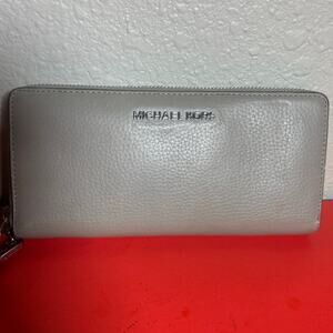 Michael Kors Jet Set Large Gray Leather Zip Wallet in great used condition. Inside very clean.