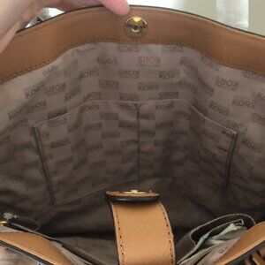 Interior: Signature MK logo on polyester lining, zippered pocket, cellphone pocket, and 3 additional pockets.