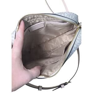 Keywords: Michael Kors, Jet Set Large Logo Crossbody Bag, Signature Print, Missing Chain, Used