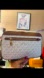 This bag is made from signature-print coated canvas with leather accents in a vanilla (white) and brown color scheme. This bag is a blend of coated canvas, polyester, and polyurethane. It has Gold-plated hardware is featured throughout, including the zipper pull. This bag has a sleek, compact, rectangular silhouette with a zip closure.