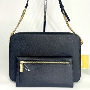 Michael Kors Jet Set Large Logo Crossbody Bag & Matching Trifold Wallet Black