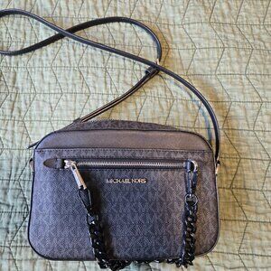Michael Kors Jet Set Large Logo Crossbody Bag in black signature-print canvas