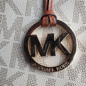 Michael Kors Jet Set Large Logo Leather Gathered Brown Vanilla Tote Purse 15"
