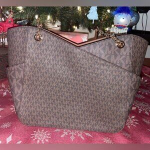 Michael Kors Jet Set Large Brown Logo Shoulder Bag! New never used without tags. Very clean on inside and outside. Made of Non Vegan Leather