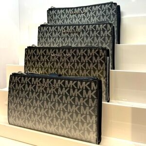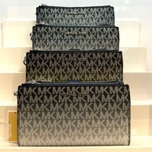 Michael Kors Jet Set Large Ombré Signature Logo Wristlet Navy Blue Multi
