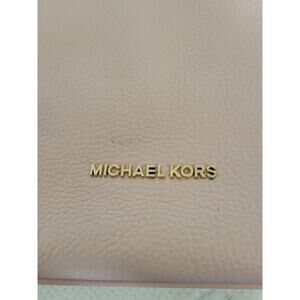 Michael Kors Jet Set Large Pebbled Leather Tote Purse Charm Pockets Beige Logo