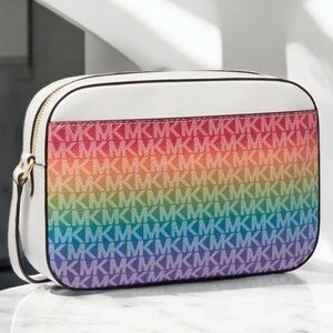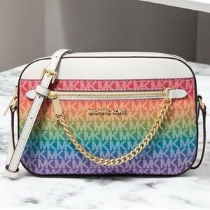 Michael Kors Jet Set Large Rainbow Signature Logo Crossbody Bag Rainbow