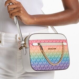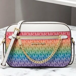 Michael Kors Jet Set Large Rainbow Signature Logo Crossbody Bag Rainbow
