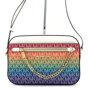 Michael Kors Jet Set Large Rainbow Signature Logo Crossbody Bag Rainbow