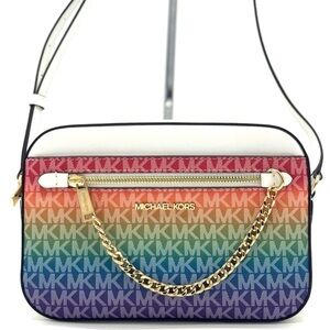 Michael Kors Jet Set Large Rainbow Signature Logo Crossbody Bag Rainbow