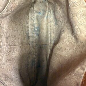Condition: Interior stains, perhaps from a pen or something similar. One scuff on the lower, outer, trim. All shown in photos.