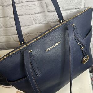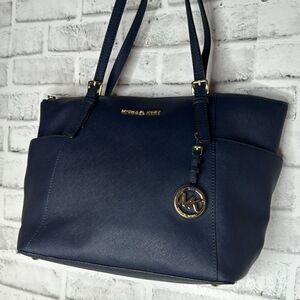 Michael Kors Jet Set Large Saffiano Leather Top-Zip Tote Bag, Navy Blue