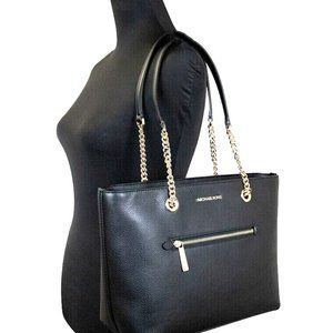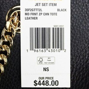 Style: Michael Kors Jet Set Medium Front Zip Chain Tote Bag (Black)