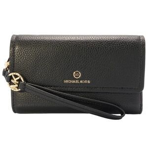 The Michael Kors Jet Set Charm Large Flap Phone Wristlet is a stylish and functional accessory designed to keep your essentials organized. Crafted with the iconic MK signature logo, this sleek black wallet offers ample space for your smartphone, cards, cash, and more. The secure flap closure keeps your belongings safe, while the detachable wristlet strap allows for easy carrying on the go. Perfect for everyday use or travel, this chic wristlet combines luxury design with practical functionality. Brand new with tags (NWT).