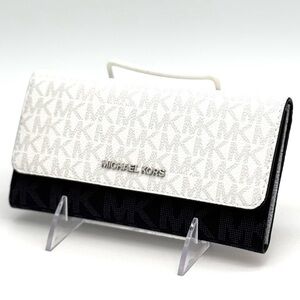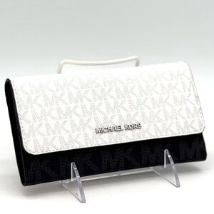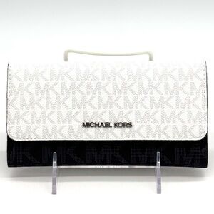 Michael Kors Jet Set Large Signature Logo TriFold Wallet Optic White Multi
