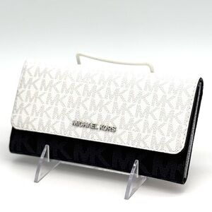 Michael Kors Jet Set Large Signature Logo TriFold Wallet Optic White Multi