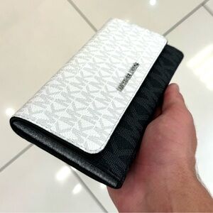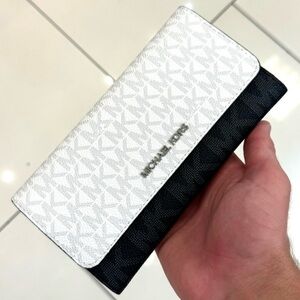 Michael Kors Jet Set Large Signature Logo TriFold Wallet Optic White Multi